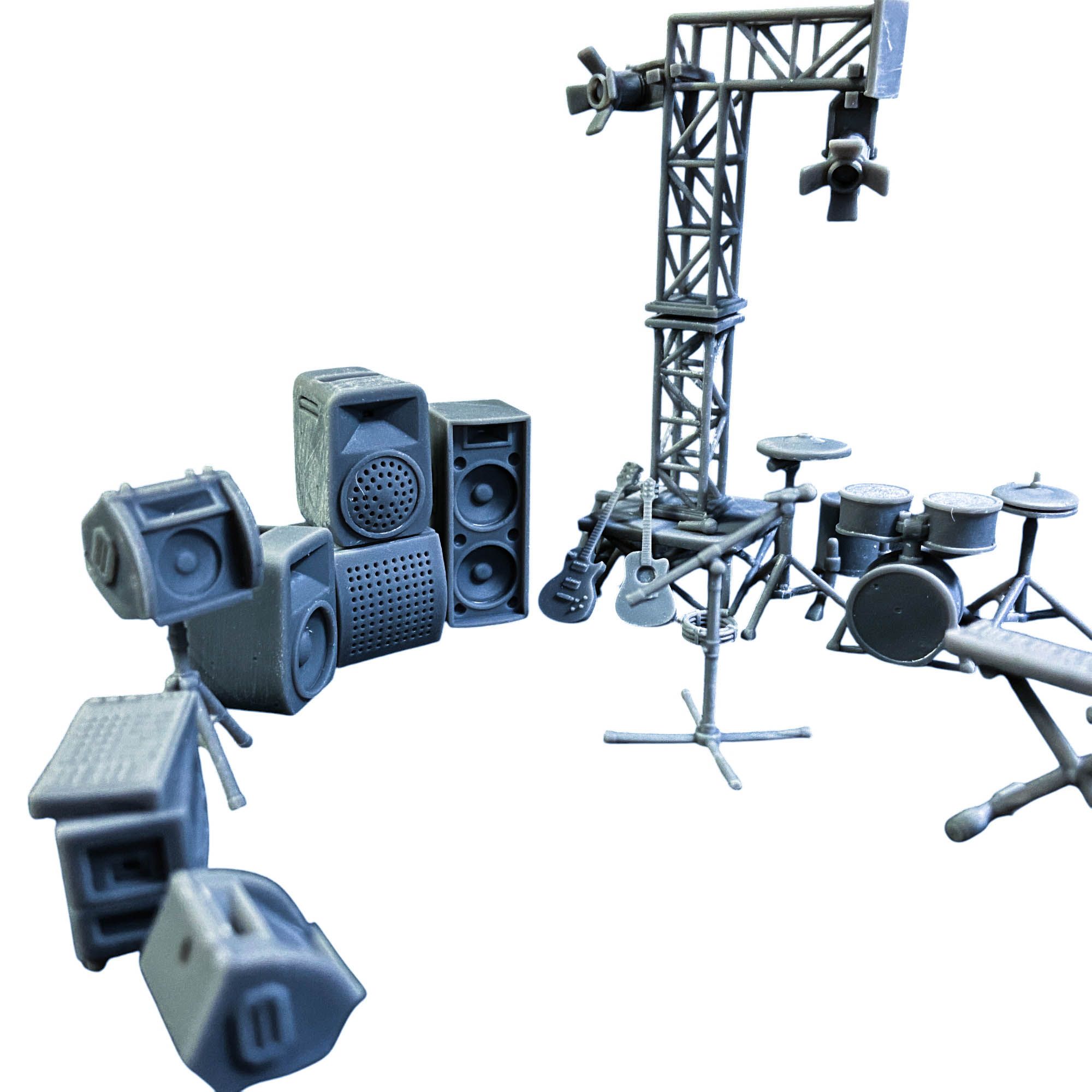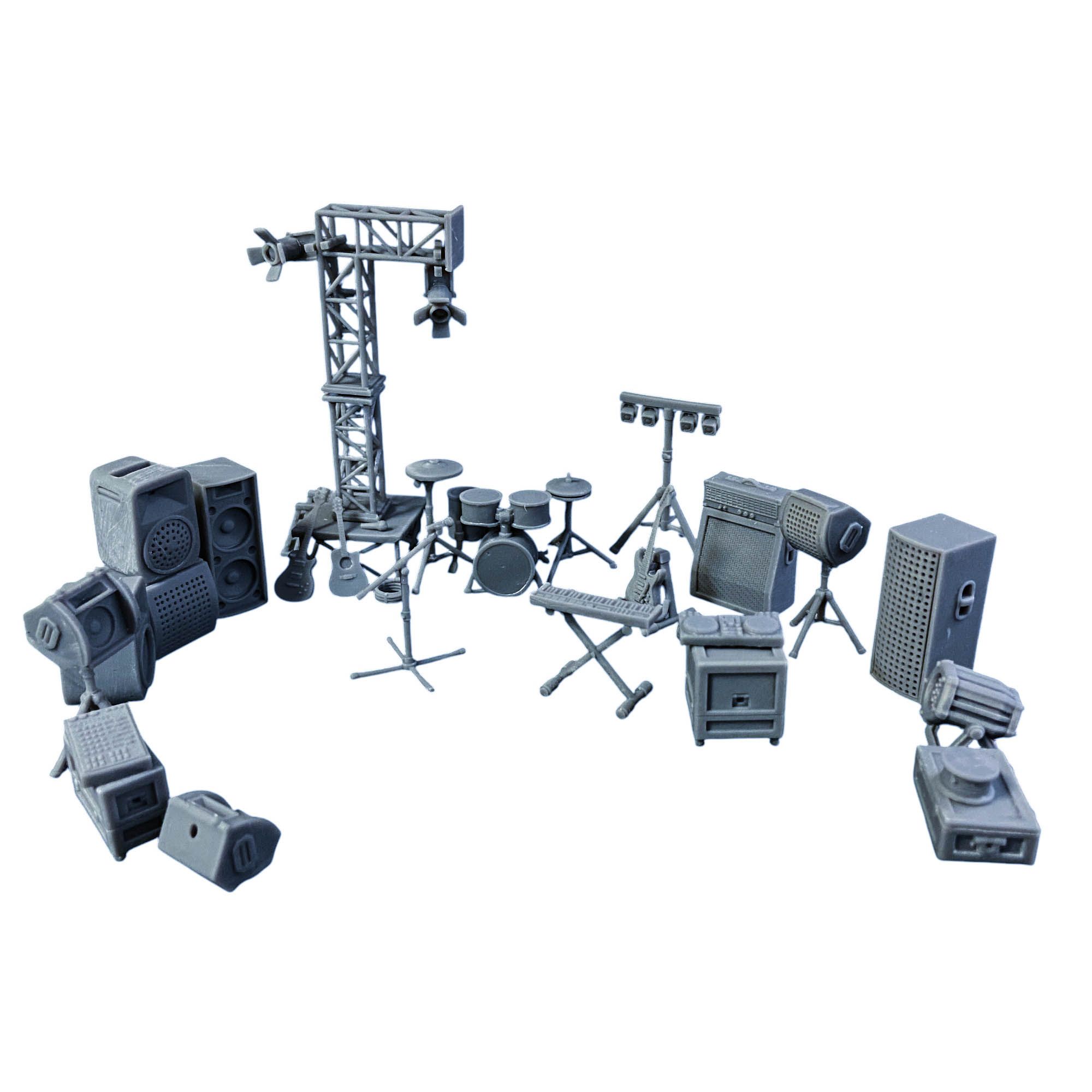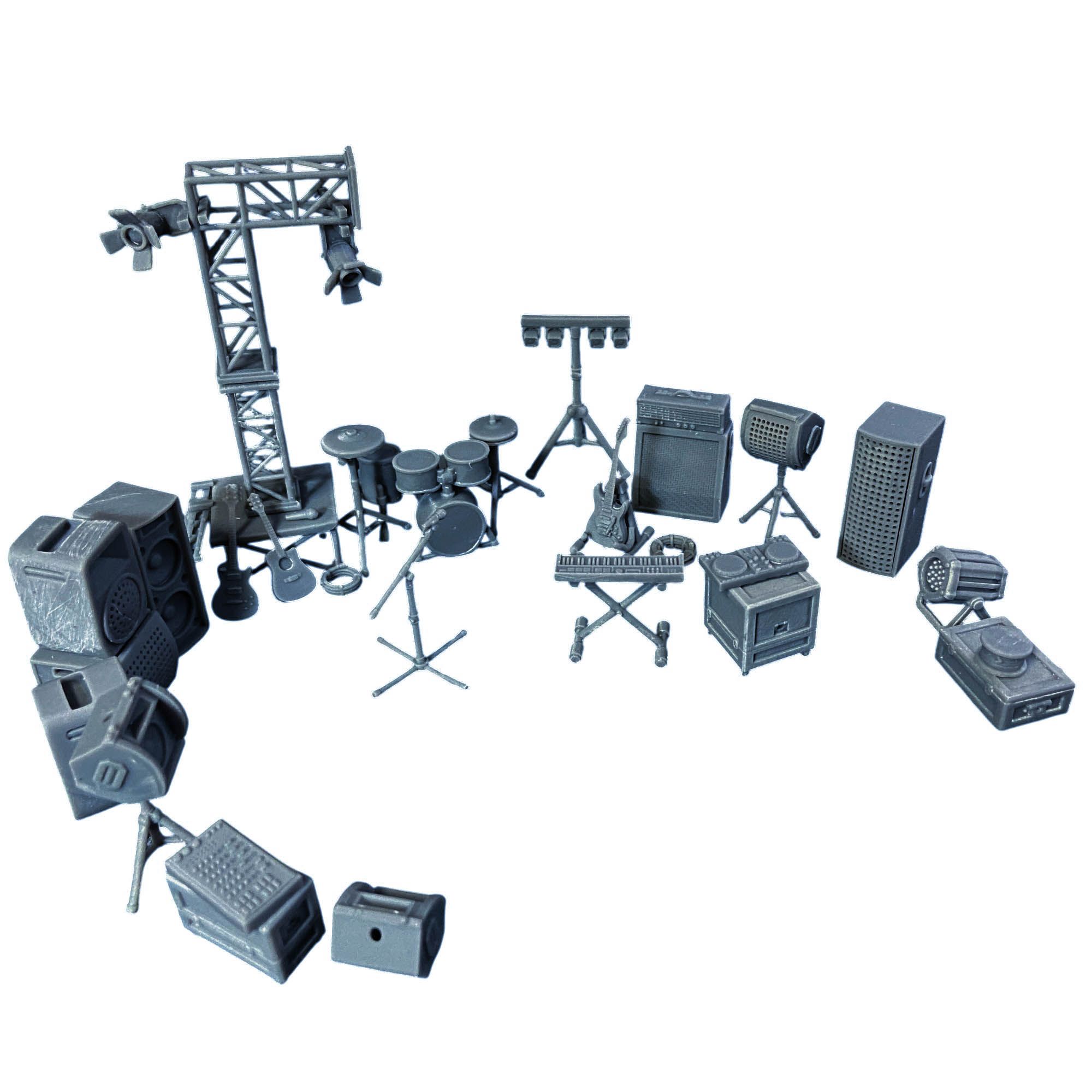 Всё, что нужно для организации миниатюрного концерта или веселой дискотеки в клубе, собрано в одном наборе. Колонки, световое оборудование, гитары, микрофон, синтезатор, диджейские вертушки, каркасы для сцены, барабанная установка и даже ящики для оборудования — каждая деталь создана с любовью и вниманием к мелочам. Этот набор идеально подходит для создания музыкальной сцены, будь то рок-концерт, электронная вечеринка или камерное выступление.