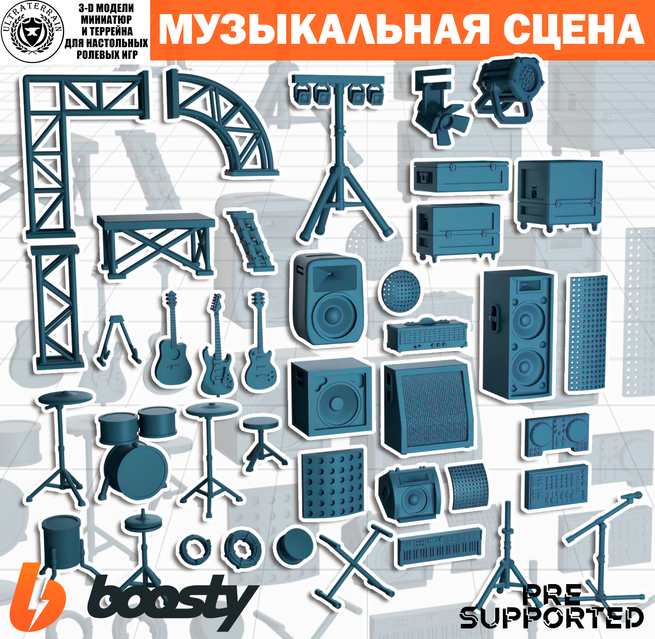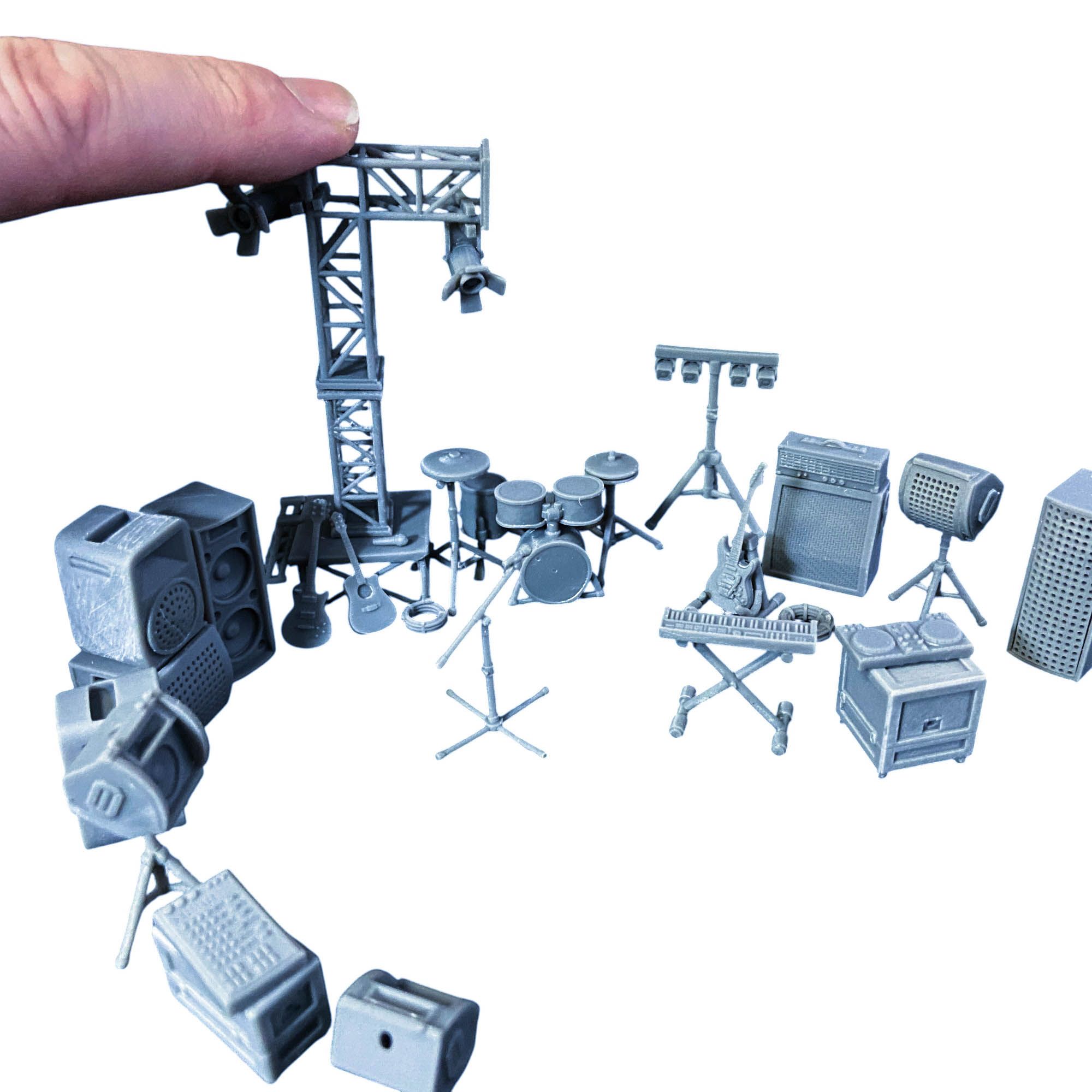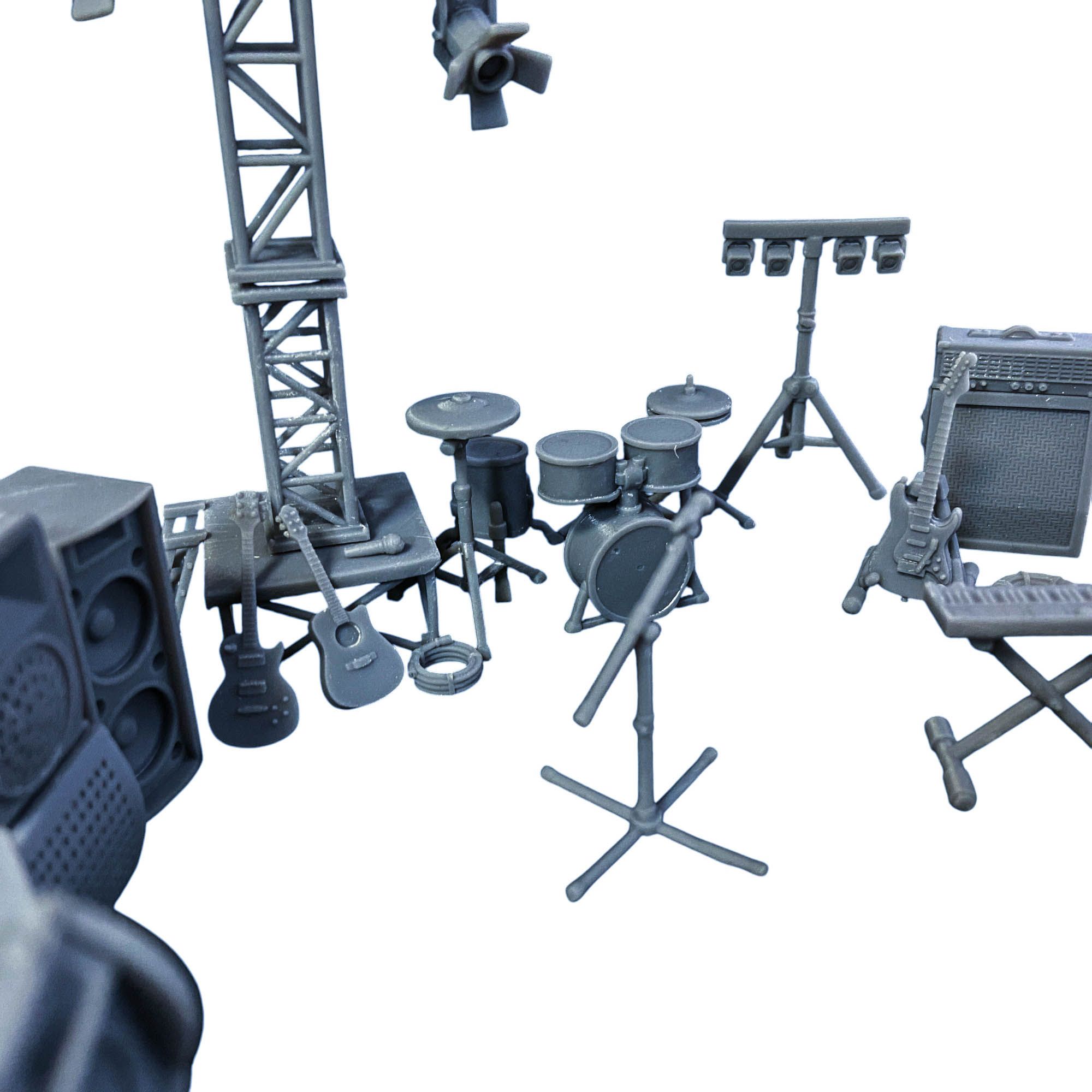 Всё, что нужно для организации миниатюрного концерта или веселой дискотеки в клубе, собрано в одном наборе. Колонки, световое оборудование, гитары, микрофон, синтезатор, диджейские вертушки, каркасы для сцены, барабанная установка и даже ящики для оборудования — каждая деталь создана с любовью и вниманием к мелочам. Этот набор идеально подходит для создания музыкальной сцены, будь то рок-концерт, электронная вечеринка или камерное выступление.